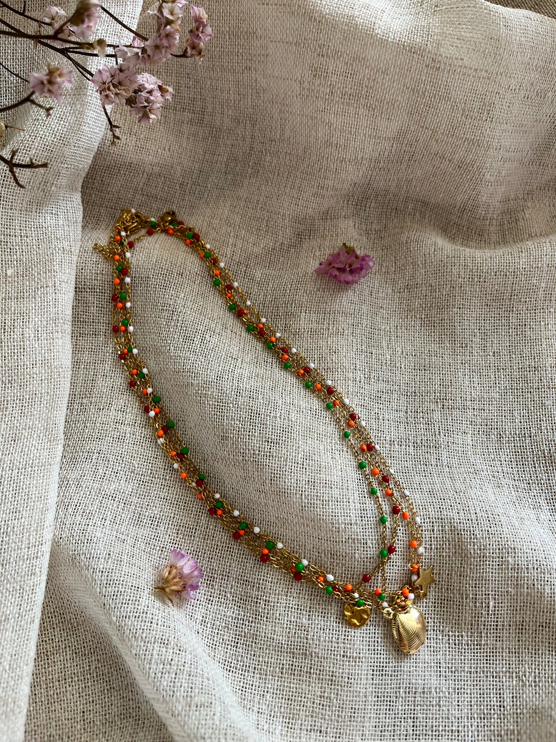 Colliers personnalisables : choisissez la couleur de votre chaîne perlée et la breloque qui vous correspond (coquillage, lune, cœur, étoile, pampille, etc.). Légers, lumineux et tendance, ils s’adaptent à tous les styles et se portent seuls ou en accumulation. Un bijou unique pour sublimer vos tenues au quotidien !