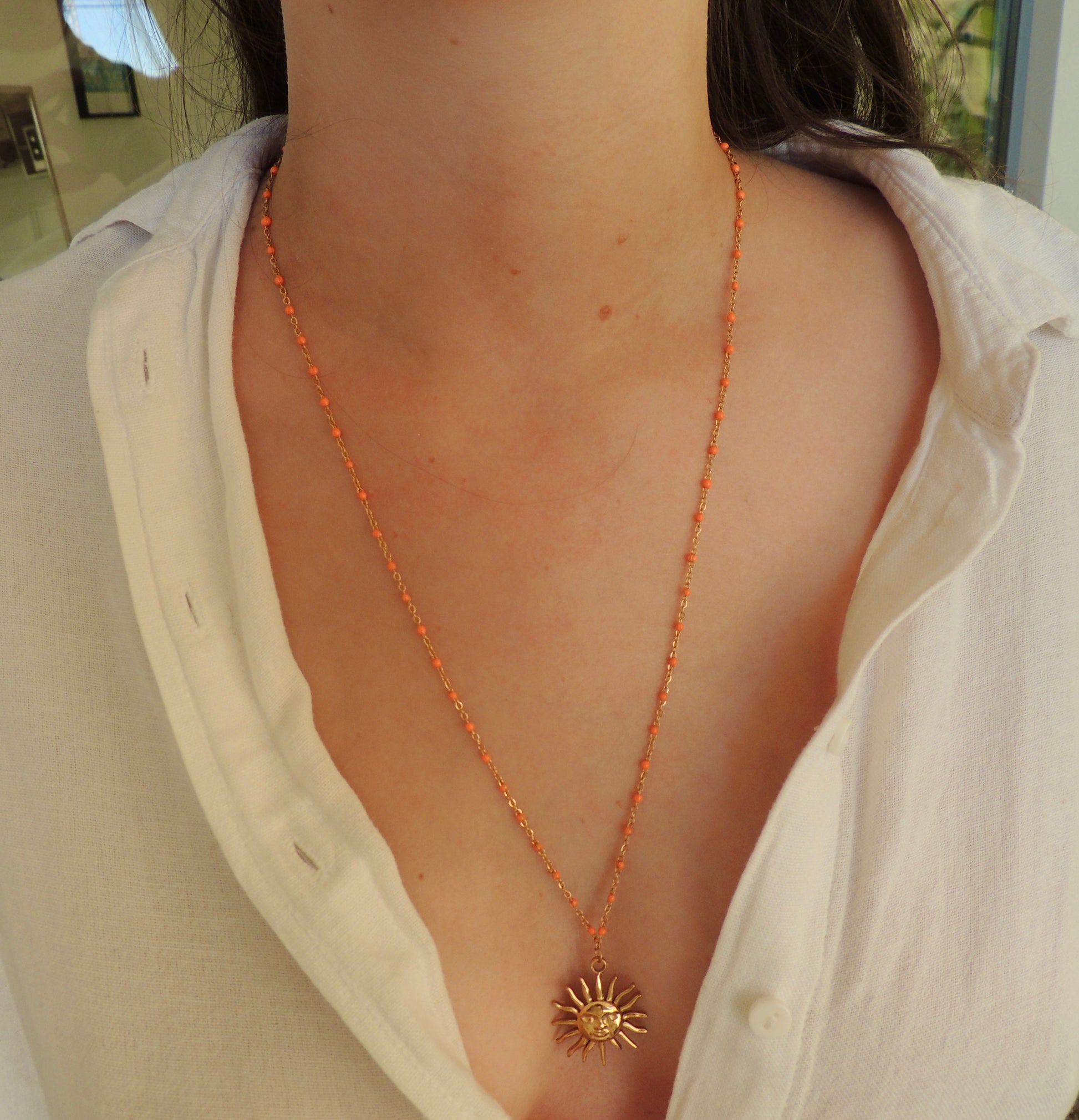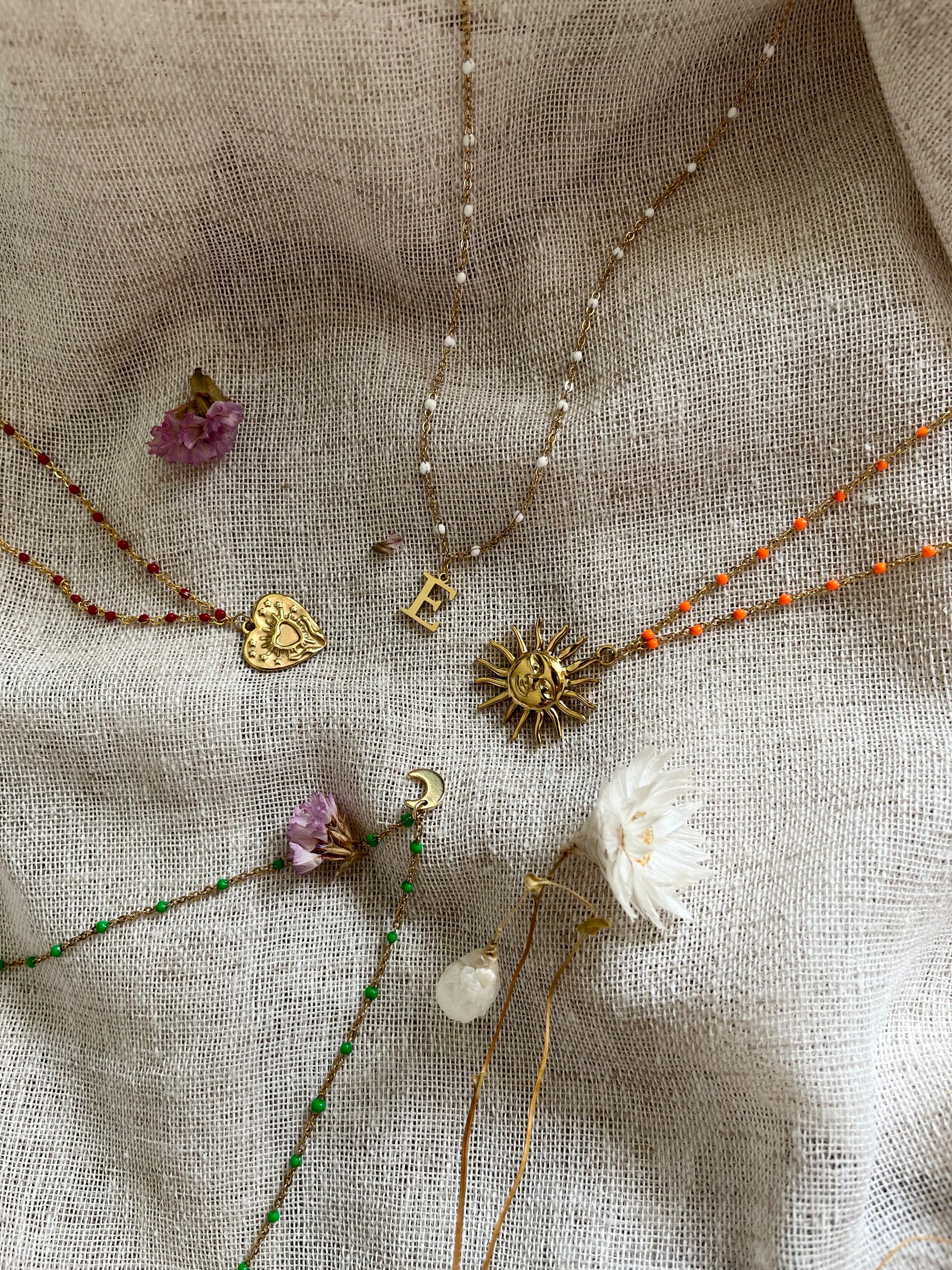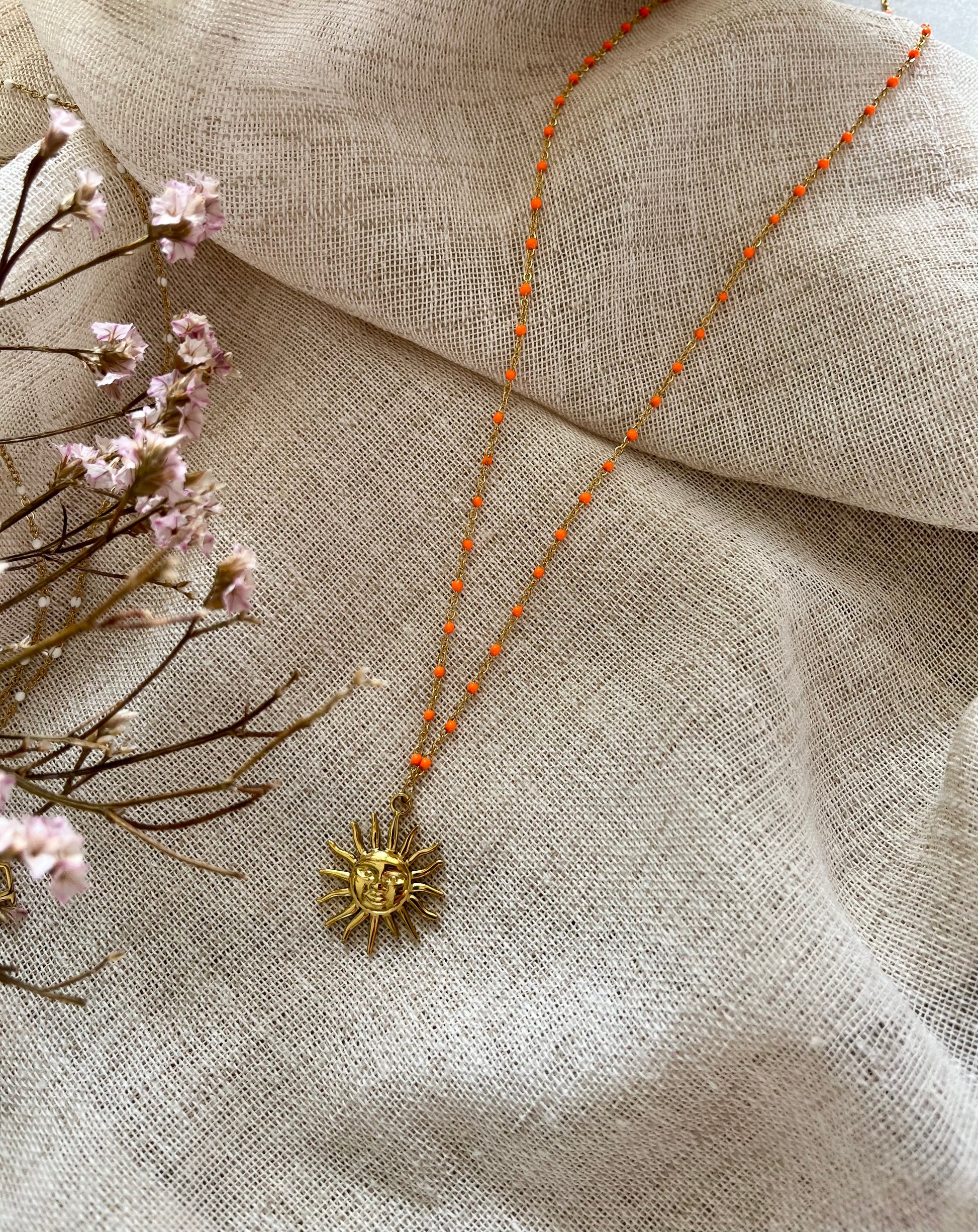 Sautoirs personnalisables : choisissez la couleur de votre chaîne perlée et la breloque qui vous correspond (soleil, lune, cœur, pampille, etc.). Légers, lumineux et tendance, ils s’adaptent à tous les styles et se portent seuls ou en accumulation. Un bijou unique pour sublimer vos tenues au quotidien !