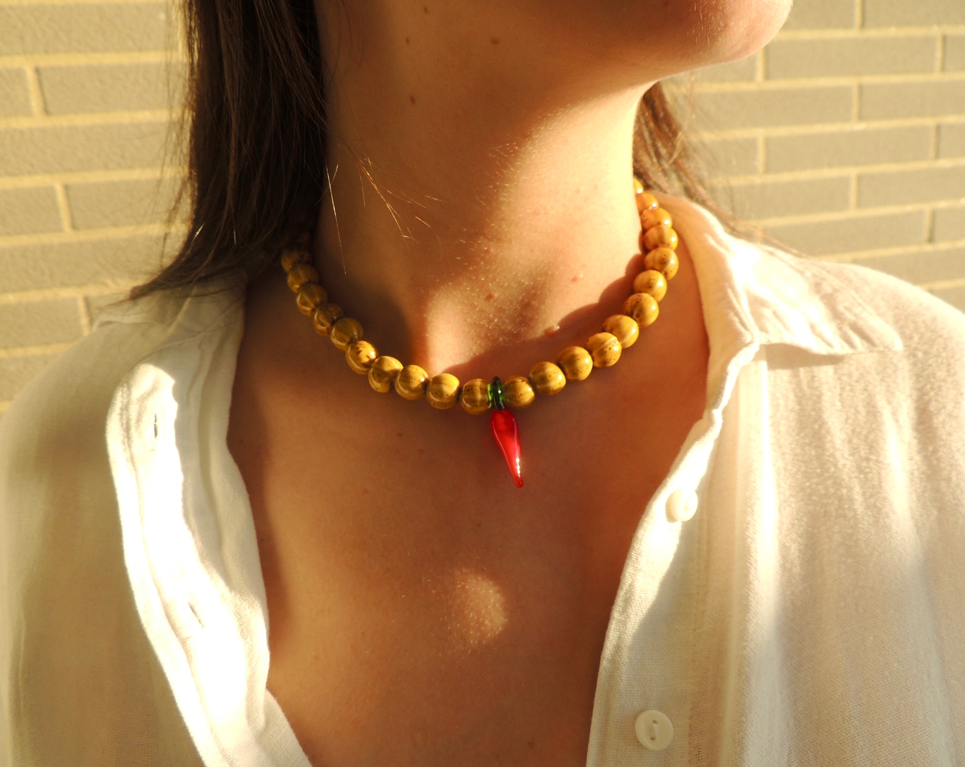 Piccante | Collier perles en céramique et breloque piment